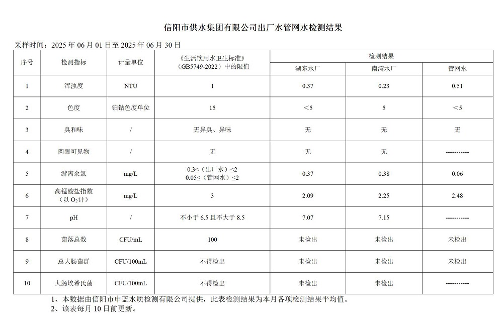 6月-出廠水、管網水常規指標檢測